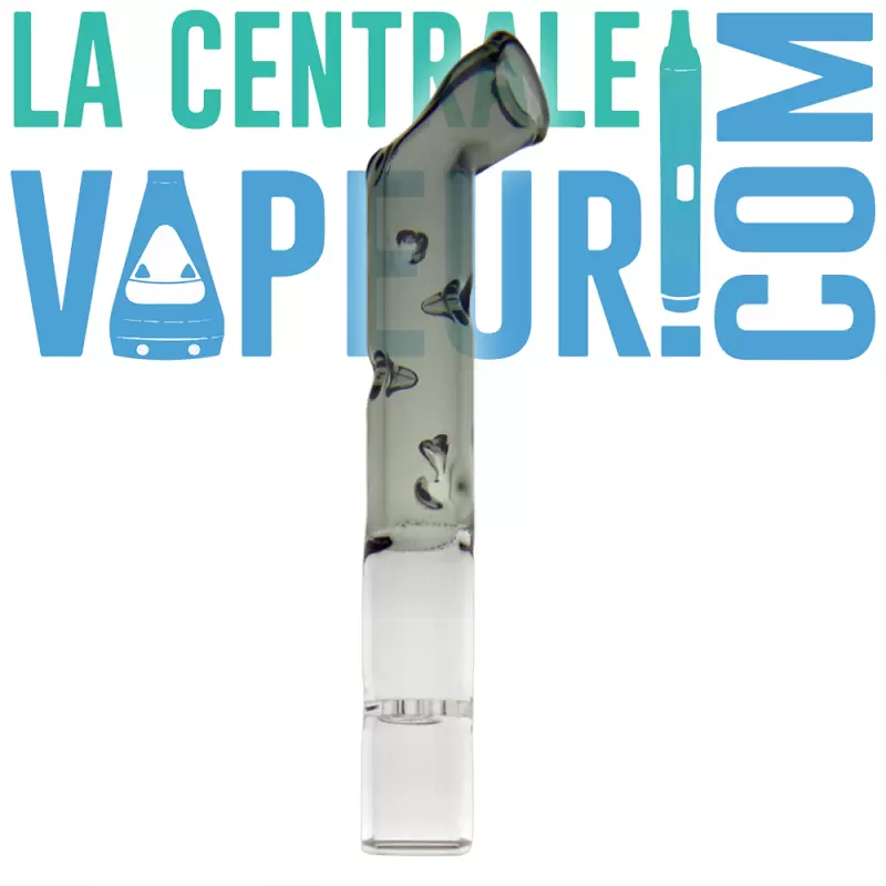 Een aerotube van gerookt glas voor Arizer ArGo vaporizer, ontworpen door Katalyzer. Vijf pieken geven het pad van de damp aan om het te verfrissen, en een trekgat bovenop maakt het gemakkelijk om de dichtheid van de trekjes te regelen.