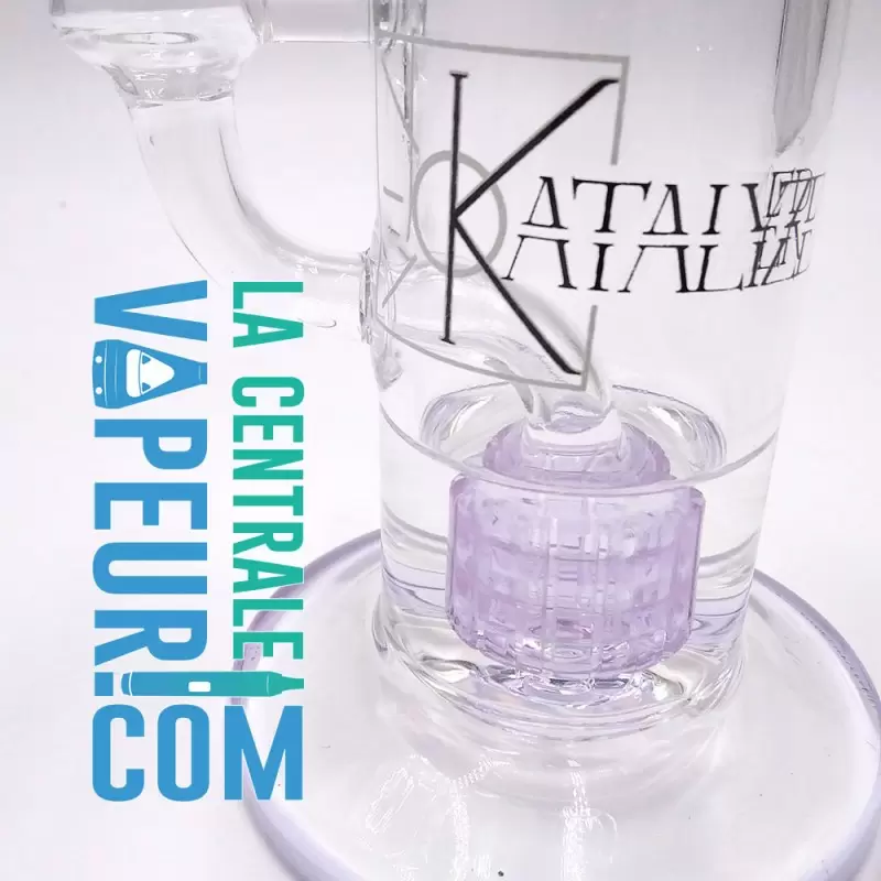 Philomene est un filtre / pipe à eau de type bubbler de 24 cm, équipé d'un percolateur avec une tête en pommeau qui offre la particularité de produire de nombreuses bulles avec peu d'eau.